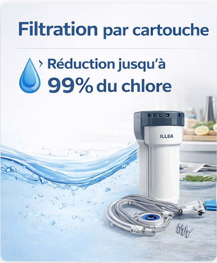 Les filtres ILLEA assurent une amélioration efficace de l’eau du robinet grâce à une filtration fine à 0.5 micron.